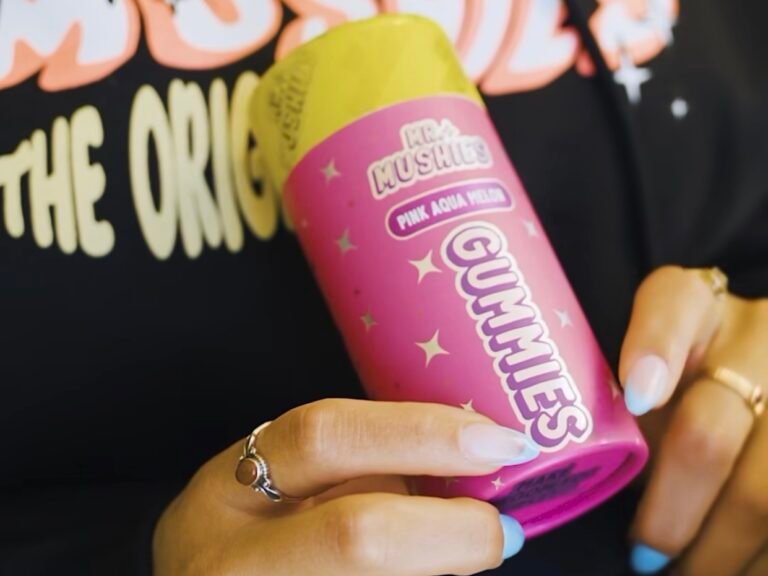 Mr Mushies Pink Aqua Melon Mushroom Gummies